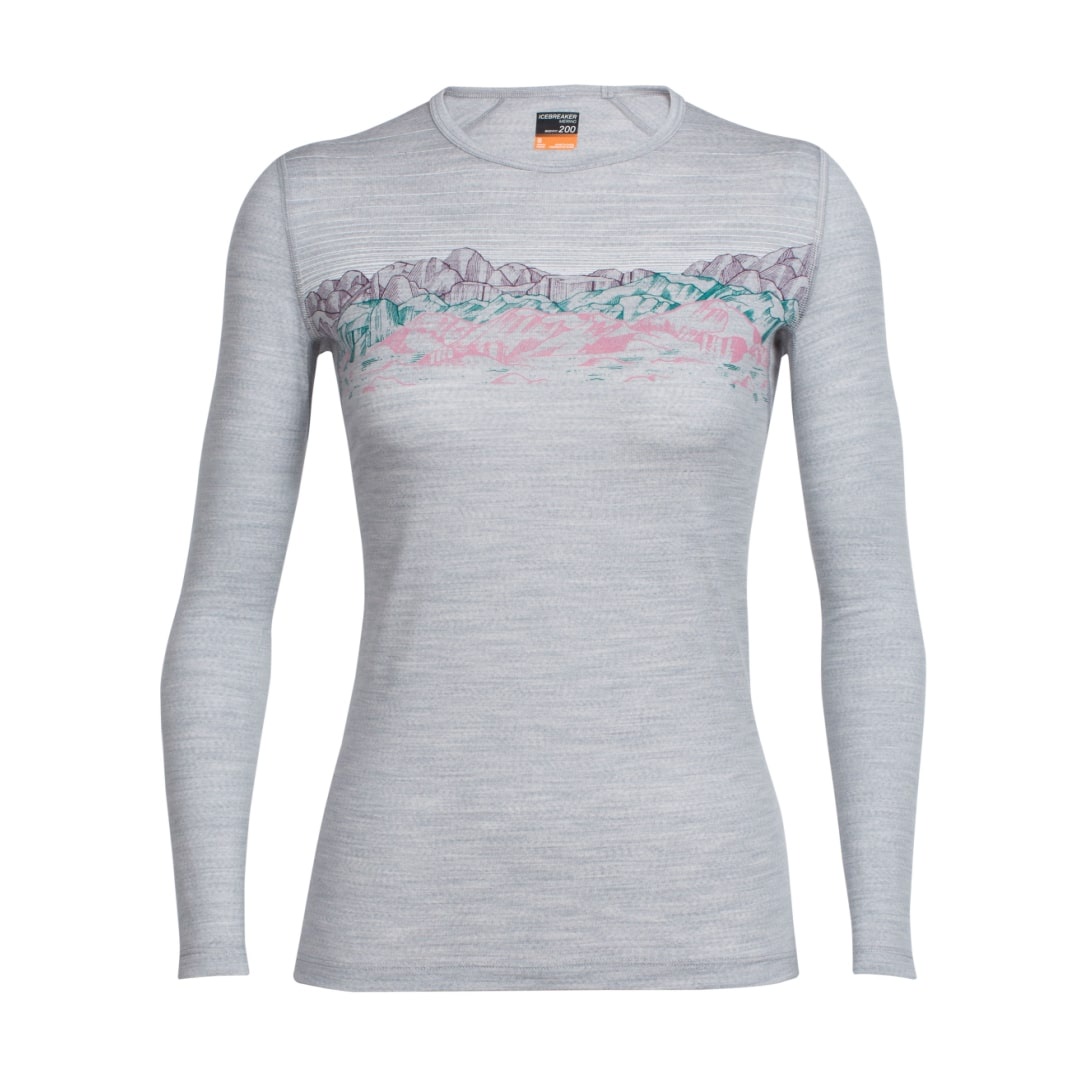 A reliable go-to layer for everyday comfort and active days outside, the Women’s Oasis Long Sleeve Crewe Sky Sunset features a technically capable yet flattering casual silhouette with the benefits of 100% merino wool. Made with our original BodyFit merino jersey fabric, the Oasis provides super-soft, next-to-skin comfort, incredible breathability and natural odor resistance. Offset shoulder seams and flatlock stitching throughout prevent chafing across the spectrum of daily motion. Original artwork by Elena Boils adds a unique dose of mountain inspiration.