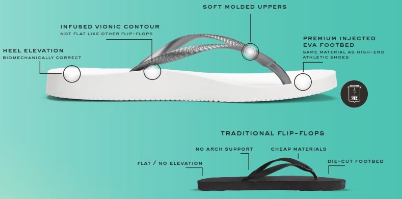 A low-profile injected EVA flip flop with Vionic's exclusive contoured arch to promote natural alignment from the feet up. They've infused their supportive technology into a sleek toe post sandal and added colors and prints to make the classic jandal better. The premium, injection molded EVA footbed offers the same cushioning and comfort as athletic shoes.