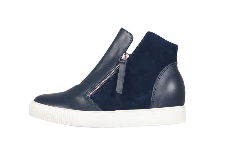 Shock from Premio is a double zip boot with a hidden wedge. Easy to wear and the 2 tone navy leather/suede combination gives this version a point of difference.