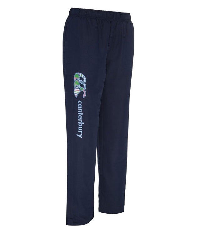 100% Polyester taslon outer. 65% polyester/ 35% cotton ugly striped liner - 135gsm. Zipped side seam pockets. Zipped leg side seams. CCC Uglies applique/print with satin stitch embroidery - right leg as worn. E612785