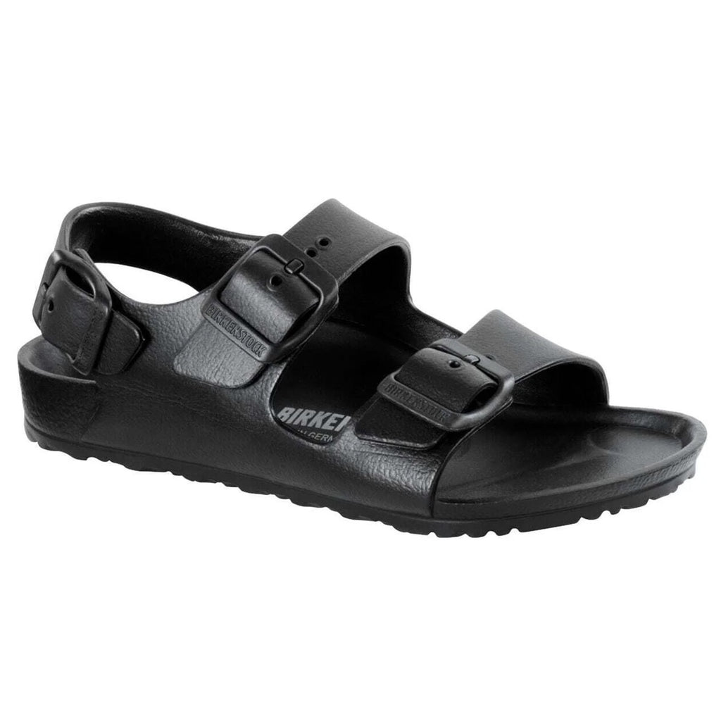 Milano for kids. The BIRKENSTOCK Milano is our classic back-strap model with extra stability and comfort. This waterproof version has the same anatomical features as the cork original while having the practical benefits of the EVA material.