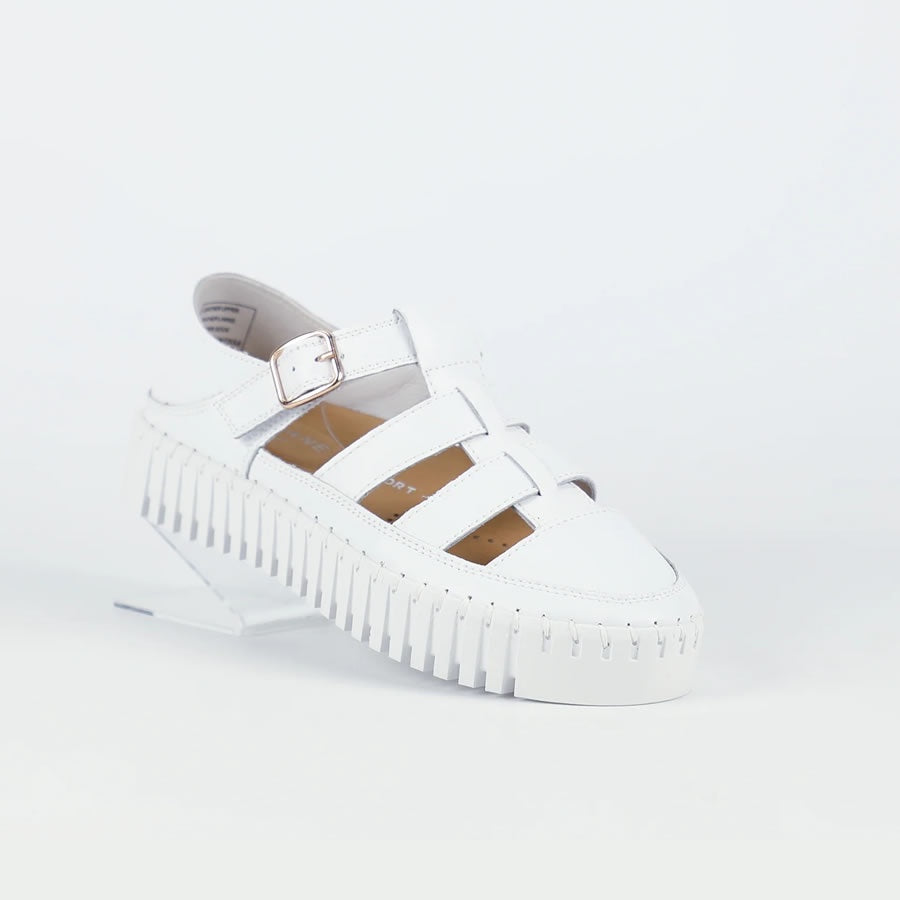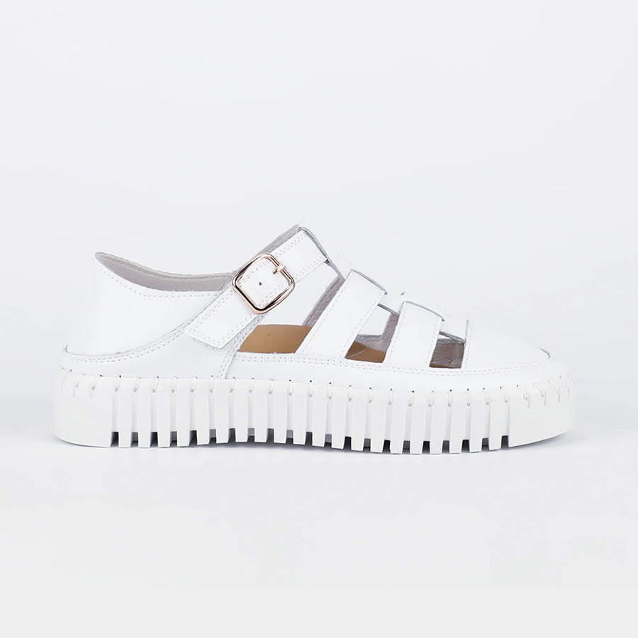Modern and fresh, the Maisy sandal brings a contemporary twist to classic summer footwear. Crafted from soft white leather, they feature wide straps, a statement platform sole, and a buckle detail for an elevated yet relaxed style. Lightweight and cushioned, they’re perfect for all-day wear.