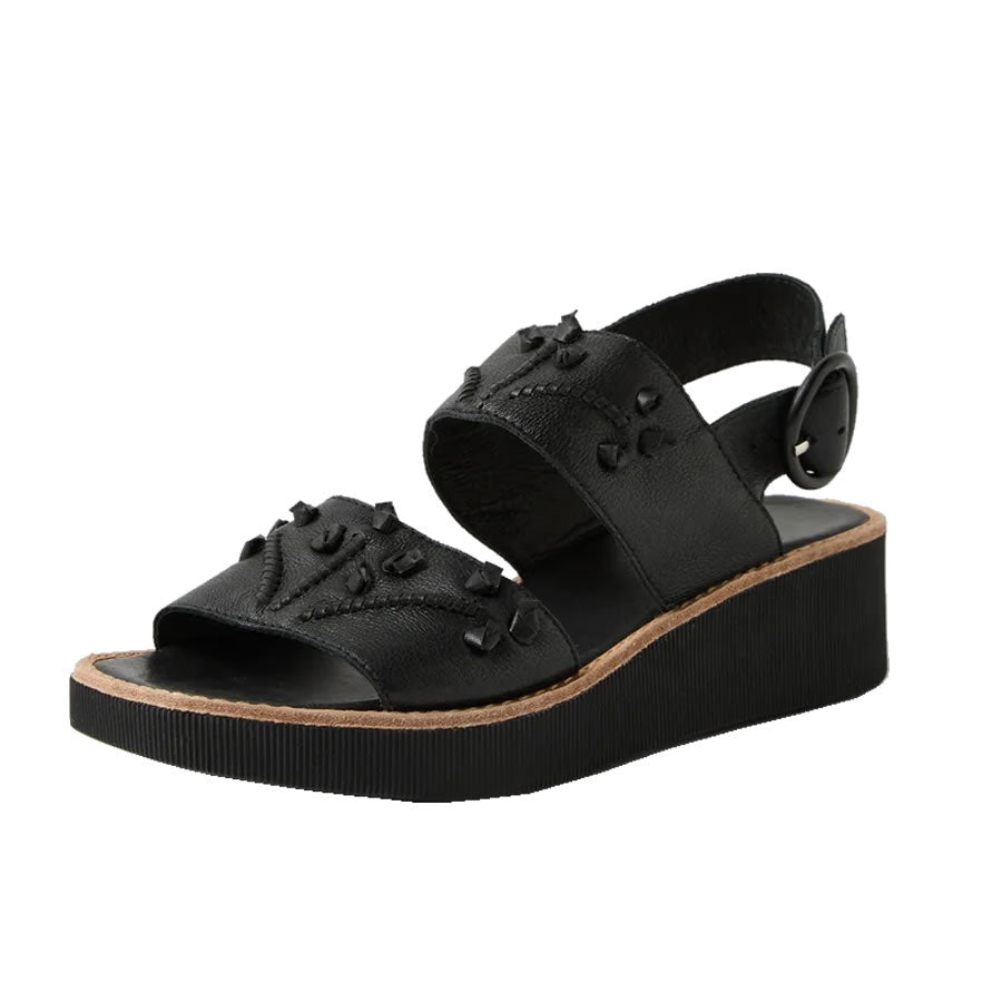 Talie, by Django and Juliette, is a 2 bar summer sandal with a buckled backstrap. Being on a wedge unit makes it a great sandal for all occasions this summer with the knotted flower details on the top straps.