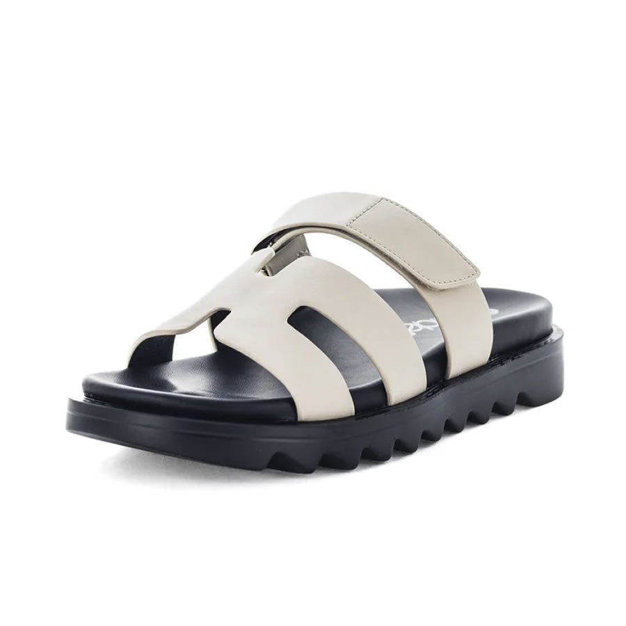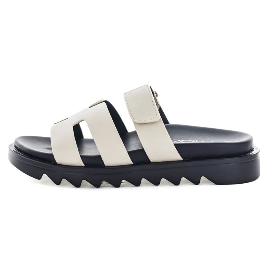 Elevate your footwear collection with the Sawyer slide from Wilde. Designed for both comfort and fashion, this sandal offers a sturdy platform sole that provides added height without sacrificing stability. The distinctive H detail and adjustable velcro strap ensure a secure fit while adding a sophisticated touch. Perfect for casual outings or dressier occasions, this sandal combines modern design with expert craftsmanship for versatile wear.