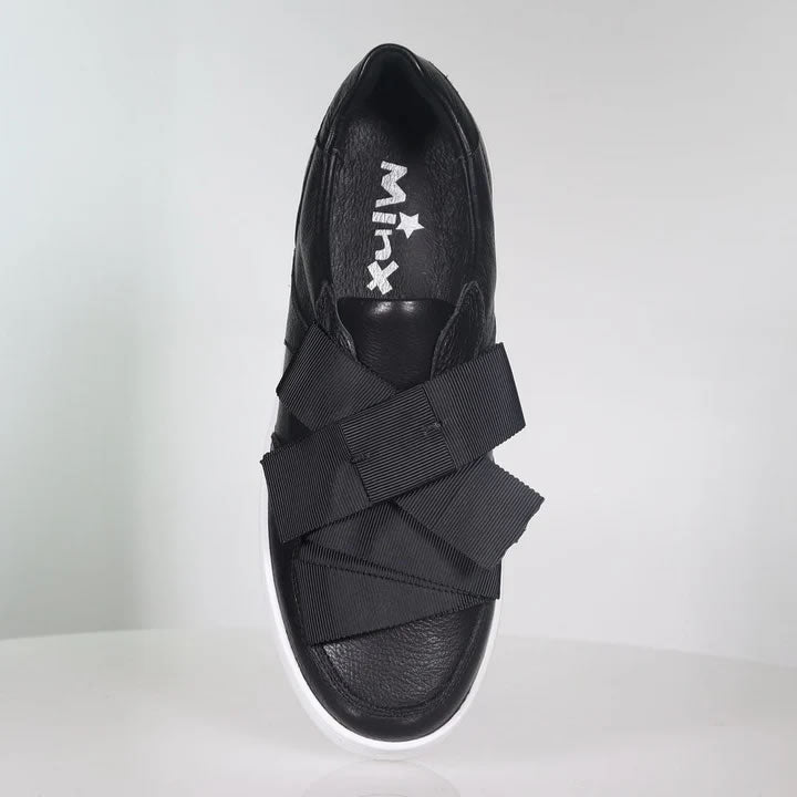 Meet Yoko, the slip-on sneaker that blends Tokyo street style with a modern minimalist twist. Crafted from full leather, Yoko's standout feature is its layered, deconstructed ribbon design, forming a bold, asymmetric bow across the front. Set on our signature 'You Look Good' rubber platform sole, it offers both statement style and all-day comfort. Whether you're pairing it with sleek monochrome looks or adding a playful touch to casual denim, this sneaker is your go-to for effortless cool with a dash of fun.